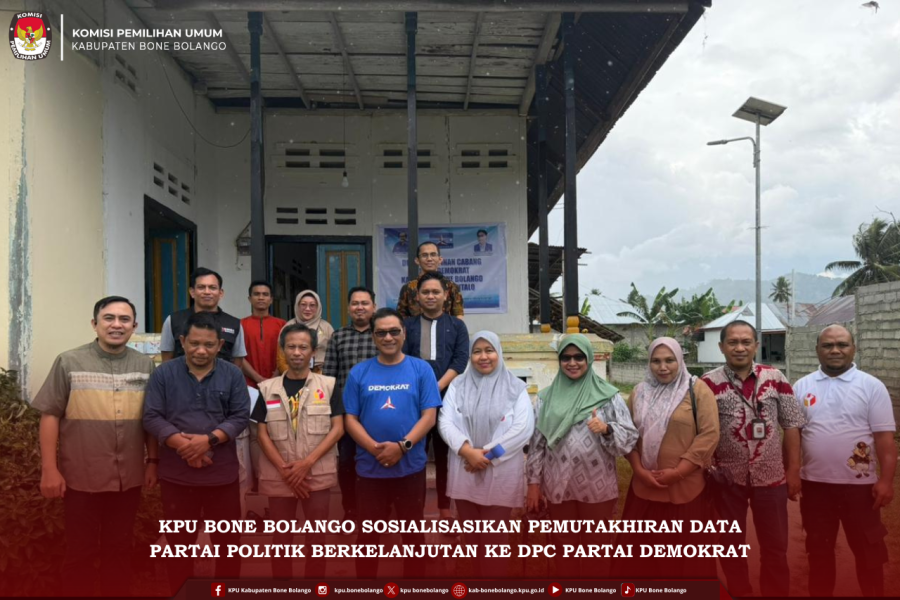 #TemanPemilih, KPU Kabupaten Bone Bolango melakukan kunjungan kerja ke Kantor Dewan Pimpinan Cabang (DPC) Partai Demokrat Kabupaten Bone Bolango, Jumat (06/02/2026). Kunjungan tersebut dilaksanakan dalam rangka sosialisasi pemutakhiran data partai politik berkelanjutan Tahun 2026. Kegiatan ini diikuti oleh jajaran Komisioner KPU Kabupaten Bone Bolango bersama Sekretariat KPU, serta dihadiri pula oleh Badan Pengawas Pemilu (Bawaslu) Kabupaten Bone Bolango sebagai bagian dari pengawasan pelaksanaan kegiatan. Dalam kesempatan tersebut, KPU Bone Bolango menyampaikan pentingnya pembaruan data partai politik secara berkala melalui Sistem Informasi Partai Politik (Sipol). Selain sosialisasi, KPU juga melakukan penelusuran dan pengecekan terhadap progres pemutakhiran data yang telah dilakukan oleh DPC Partai Demokrat. Plh Ketua DPC Partai Demokrat Kabupaten Bone Bolango, Rully Hunawa, menyampaikan bahwa pihaknya masih menunggu pelaksanaan Musyawarah Daerah (Musda) yang direncanakan berlangsung pada bulan April mendatang, sebelum melanjutkan proses pemutakhiran data secara menyeluruh. #KPUMelayani ....