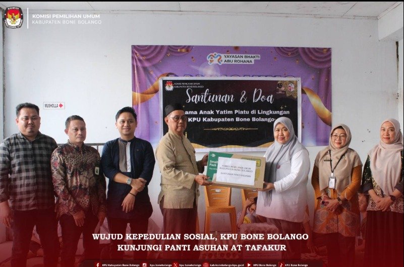 #TemanPemilih, KPU Kabupaten Bone Bolango melaksanakan kegiatan berbagi kepedulian dengan anak-anak Panti Asuhan At Tafakur, Kecamatan Kabila, sebagai wujud kepedulian sosial dan penguatan nilai kemanusiaan, Jumat 06/02/2026. Kegiatan tersebut dihadiri oleh Ketua dan Anggota KPU Kabupaten Bone Bolango, jajaran Sekretariat KPU, serta pengurus Panti Asuhan At Tafakur. Suasana kegiatan berlangsung hangat, penuh kekeluargaan, dan sarat nilai kebersamaan. Sutenty Lamuhu yang dalam sambutannya menyampaikan bahwa kegiatan ini merupakan bagian dari komitmen KPU untuk tidak hanya menjalankan tugas teknis kepemiluan, tetapi juga hadir dan berbagi manfaat bagi masyarakat. “KPU tidak hanya hadir pada momentum pemilu, tetapi juga ingin terus hadir di tengah masyarakat melalui kegiatan sosial seperti ini. Berbagi dengan anak-anak di panti asuhan adalah bentuk rasa syukur sekaligus kepedulian kami terhadap sesama,” ujar Sutenty Lamuhu. Melalui kegiatan ini, KPU Kabupaten Bone Bolango berharap dapat mempererat hubungan kelembagaan dengan masyarakat serta menumbuhkan semangat berbagi dan kepedulian sosial sebagai bagian dari pengabdian kepada daerah. #KPUMelayani ....
