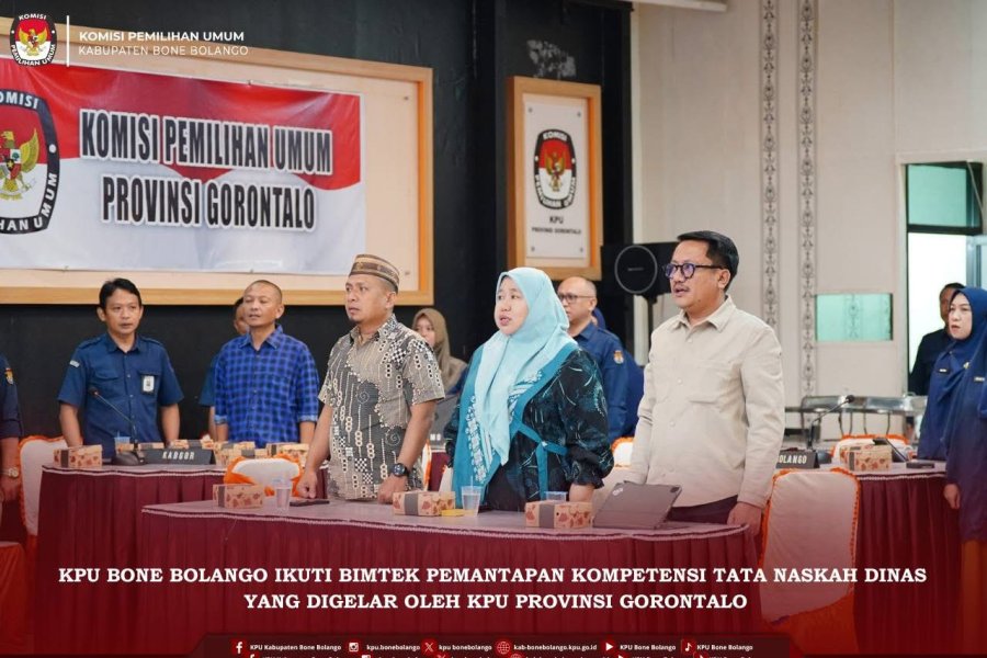 KPU Bone Bolango ikuti Bimbingan Teknis Pemantapan Kompetensi Penggunaan Tata Naskah Dinas dan Sosialisasi Pelayanan Prima yang diselenggarakan oleh KPU Provinsi Gorontalo di Aula KPU Provinsi Gorontalo, Selasa (04/11/2025).