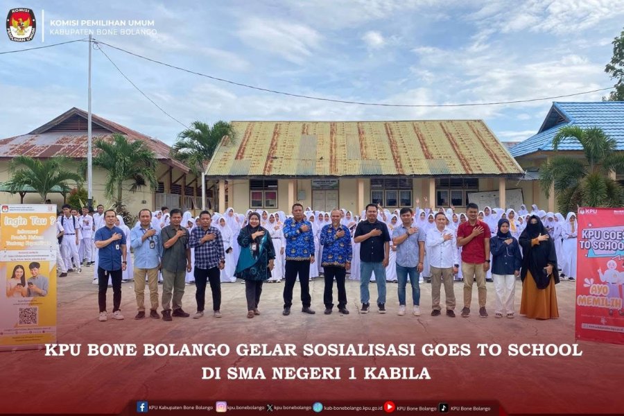 Komisi Pemilihan Umum (KPU) Kabupaten Bone Bolango kembali melaksanakan kegiatan sosialisasi bertajuk KPU Goes to School di SMA Negeri 1 Kabila, Rabu (17/09/2025). Kegiatan ini dihadiri langsung oleh Ketua dan anggota KPU Bone Bolango bersama jajaran sekretariat.