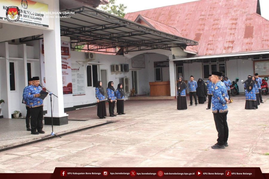 Sekretaris KPU Kabupaten Bone Bolango menyerahkan piagam penghargaan ASN Berprestasi kepada 4 (empat) orang ASN yang terdiri dan PPS dan PPPK