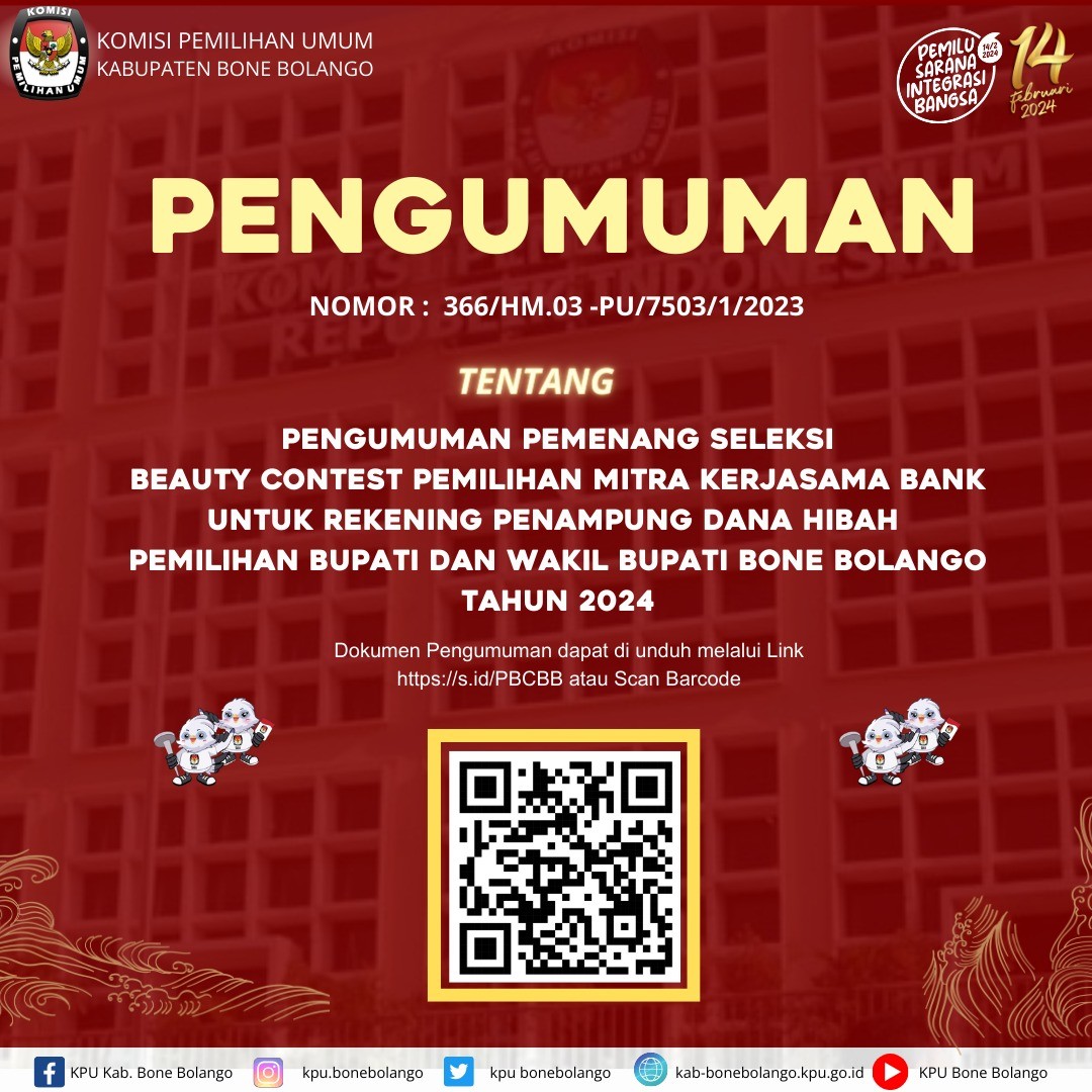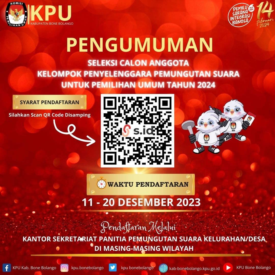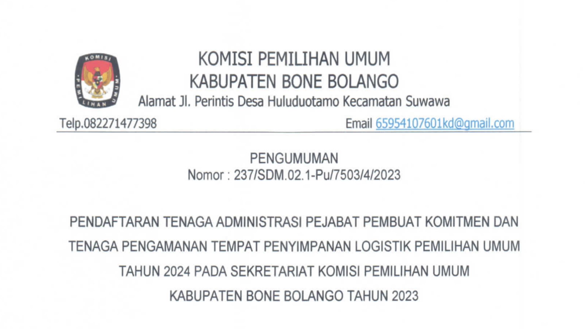 PENGUMUMAN HASIL SELEKSI CALON ANGGOTA KELOMPOK PENYELENGGARA PEMUNGUTAN SUARA UNTUK PEMILU TAHUN 2024 SE KABUPATEN BONE BOLANGO